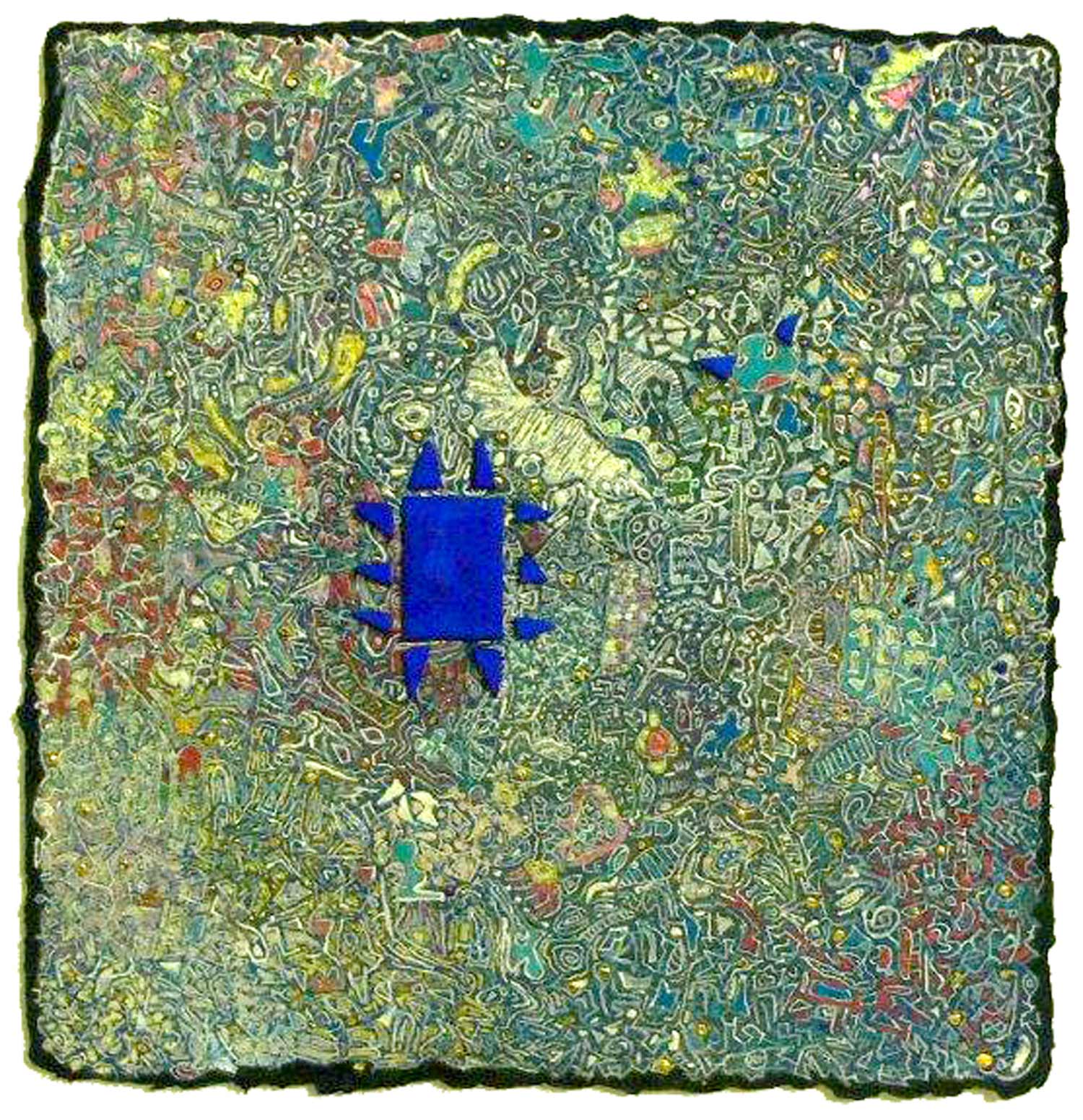 2 Blaue 28. Mai 20171. Juni 2017anna_schmidt_berlin Spektralfarbige Pigmente, Tusche, Kollage, auf handgeschöpftem Bütten, Karton 53 x 52 cm, 2016