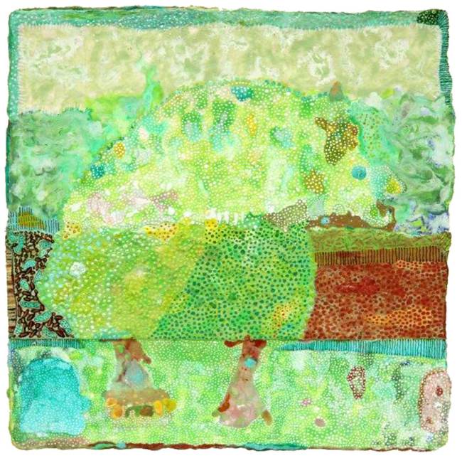 Pigmente, Aquarell, mixed media auf handgeschöpftem Bütten Karton, Museumsglas 47 x 48 cm, 2016