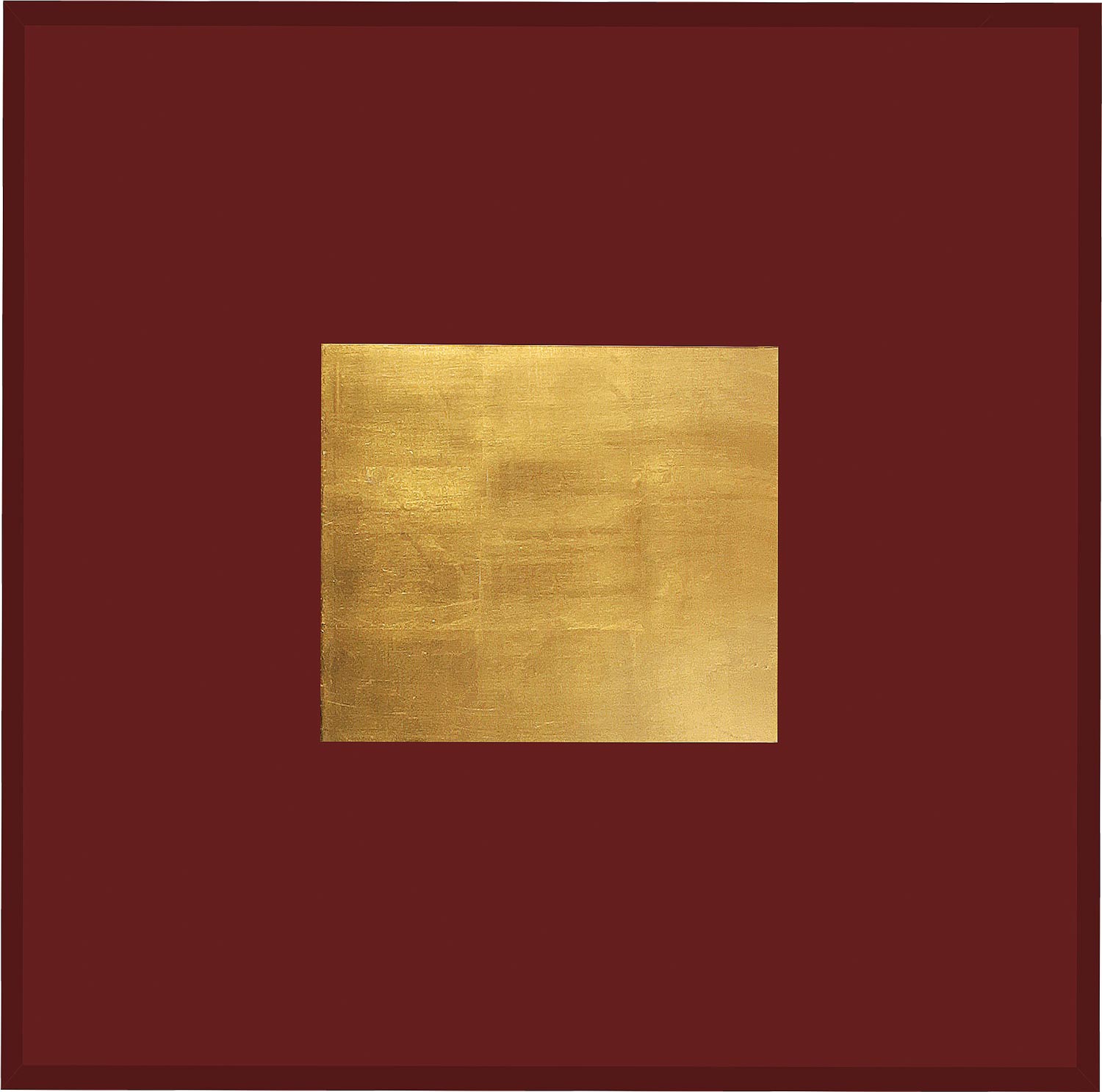 57 x 57 cm, ein angefertigter Stahlbehälter wurde 24 Karat Hand vergoldet. Auf bemaltem Holzkorpus, Museumsglas 2015. Handwerkliche Ausführung Ludwig Dunkel.