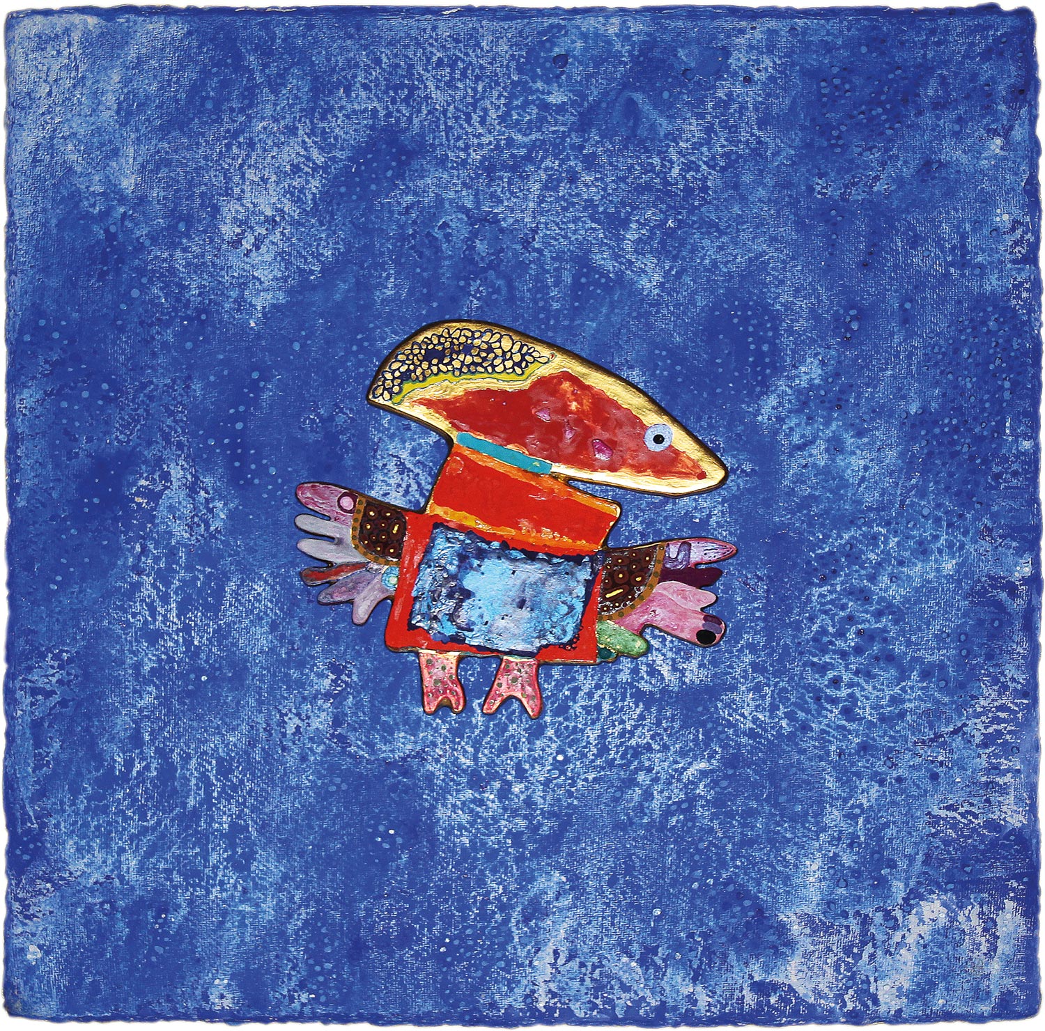 24 Karat Hand vergoldetes, halb plastisches Holzobjekt, 77 x 77 cm auf handgeschöpftem Bütten Karton, Objekt teilweise bemalt, Museumsglas 2015/16