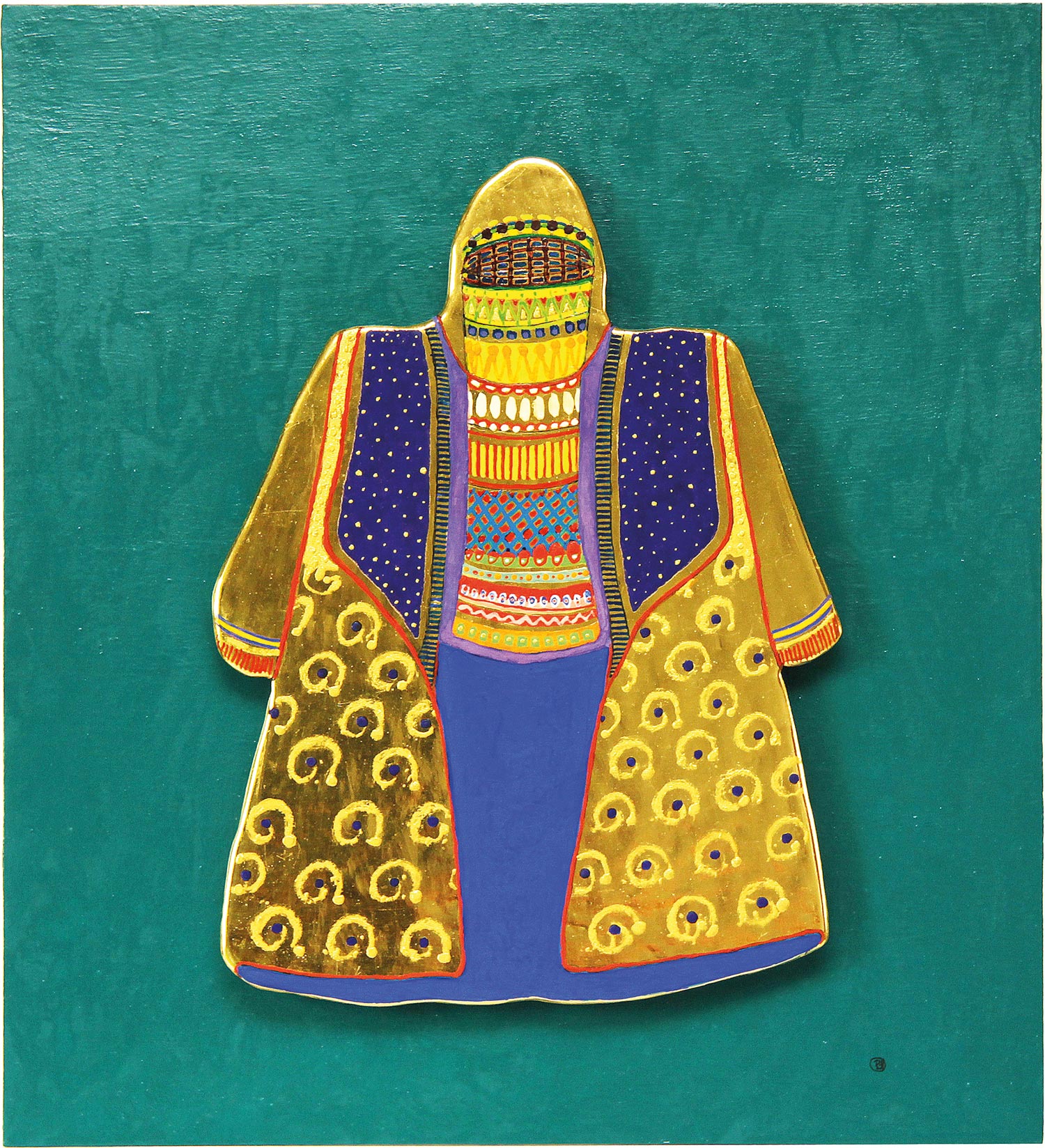 Gewand 19. September 201611. März 2018anna_schmidt_berlin 60 x 56 cm, vergoldetes, halb plastisches Holzobjekt 24 Karat, Objekt bemalt auf handgeschöpftem Bütten Karton, Museumsglas 2015