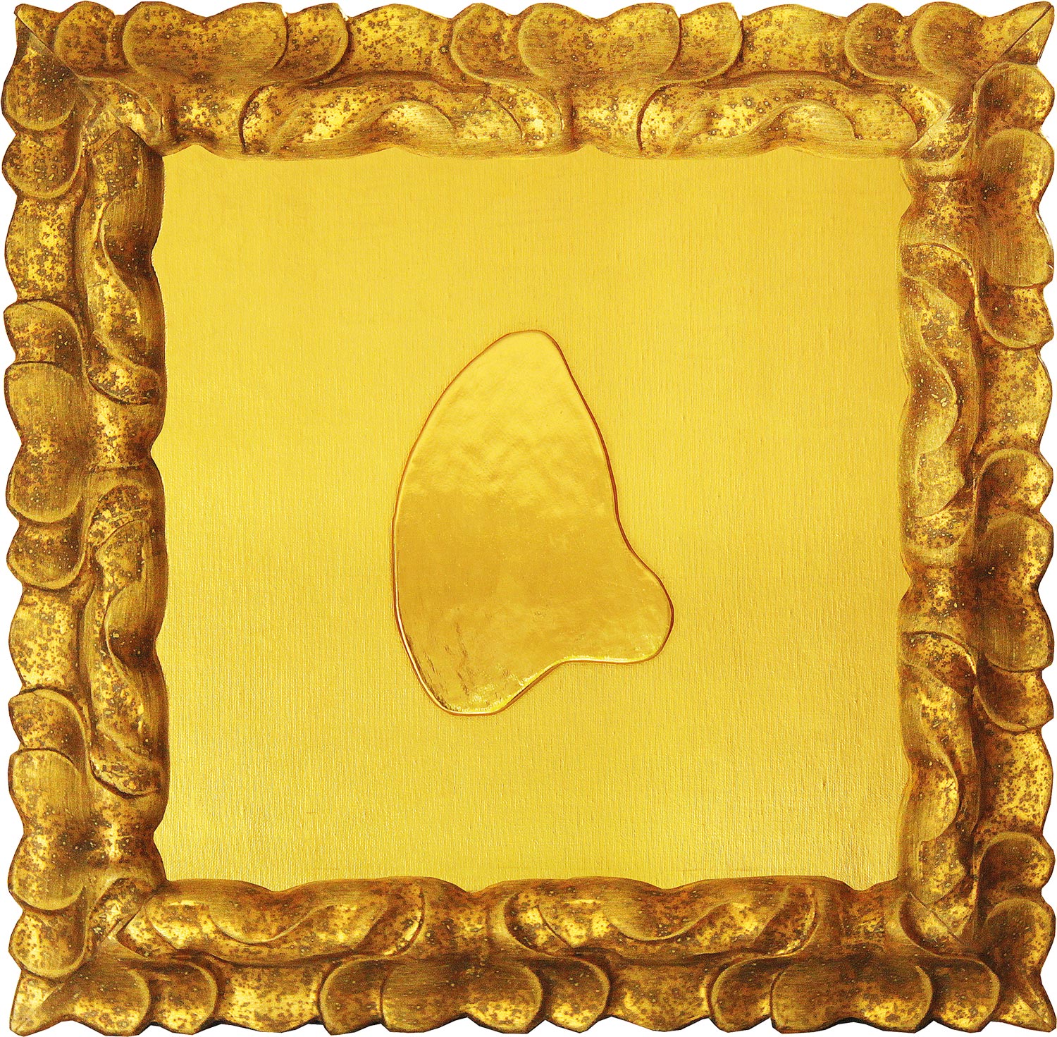 53 x 53 cm, 24 Karat vergoldetes, halb plastisches Holzobjekt auf 24 Karat vergoldeter Leinwand, Museumsglas 2015.