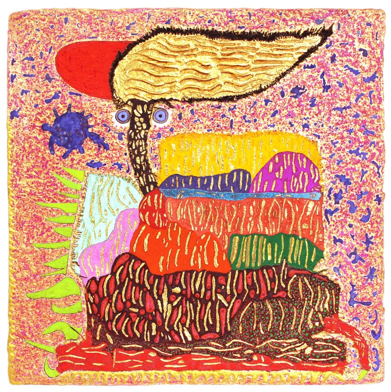 80 X 80 cm, Pigmente, Ölkreide, gesamte Fläche Leinen, gespachtelt und 24 Karat Hand vergoldet, Museumsglas, 2017