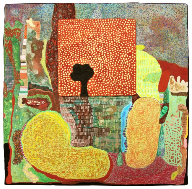Pigmente, Muschelgold, Tusche, Ölkreide, 24 Karat Hand vergoldetes Holzobjekt auf handgeschöpftem Bütten Karton, Museumsglas, 76 x 76 cm, 2016